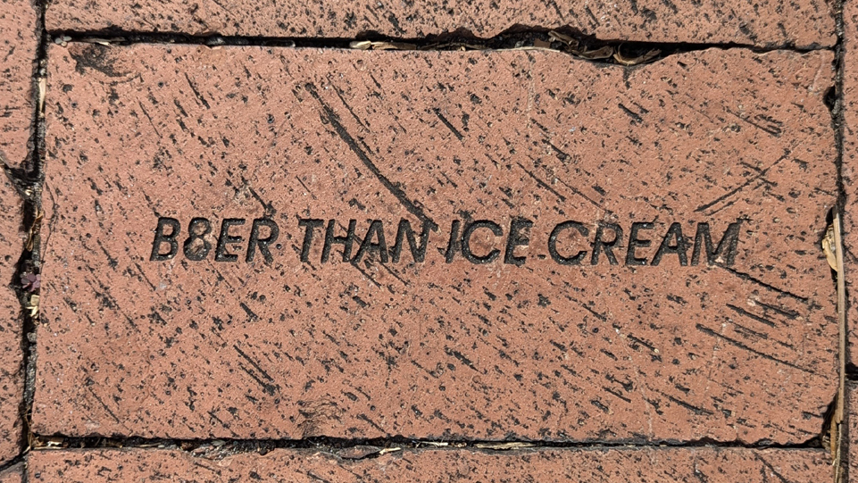 Here at the Esplanade is one of the areas of the Riverwalk where the memorial bricks that people have bought are laid into the the Riverwalk. This is a large area (the largest, I think) of these bricks, and one can spend a fair amount of time walking around and reading the inscriptions. Most common are inscriptions of love or affection, but there are also marriages, memorials to the deceased (as is our brick dedicated to Ty and Scott that is in an area back at the beginning of the Riverwalk near the Cheesecake Factory), and all kinds of other inscriptions as well.