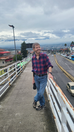 At right, Fred is standing at the top of this same ramp, and behind him you can see the road to Quito (one of them, anyway, this being the road that leads up to the tunnel).