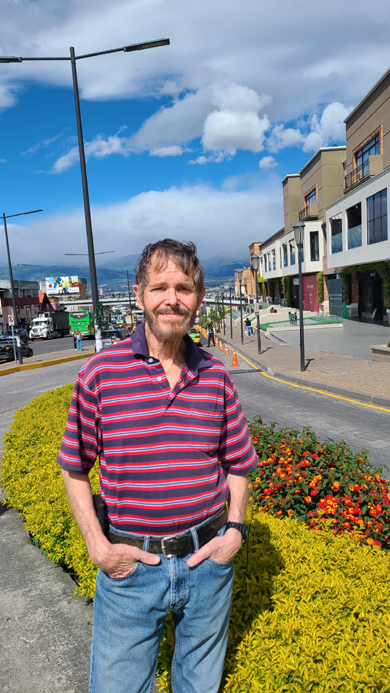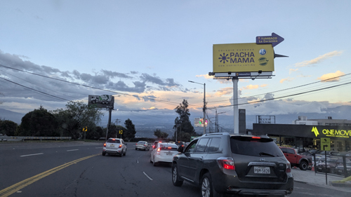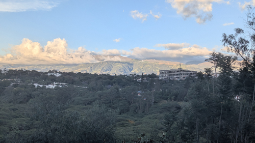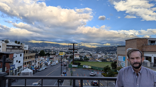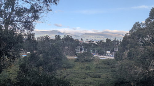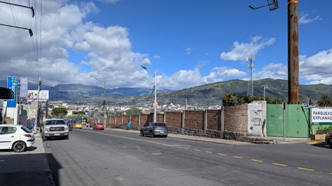 On a different day, Fred and I were standing in front of Paseo San Francisco, and in this picture Fred took you can see the overpass behind me. On a different day, Fred took another good picture looking in the same direction, and you can see the overpass as well as the Tumbaco Valley in the background.
