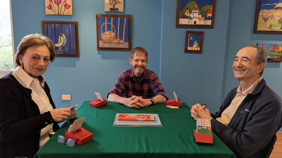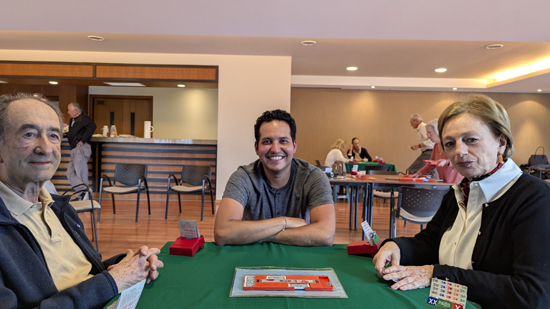 I met a lot of very nice people, many of whom spoke a good deal of English (and one or two who were expats from the US and of course spoke quite well). I joined the group chat on WhatsApp, which is how people find partners for the games (although a good many partnerships are of long standing). Perhaps because Ruben and I did so well, two people who didn't have established partnerships for this Wednesday game asked if I might want to play with them. Of course I was happy to, and for the next four weeks I had a standing date for the Wednesday game.