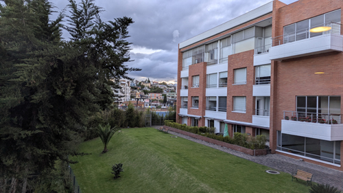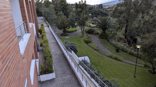 Suites are on both sides of the long building, so some have street views and some have views of the Tumbaco Valley: