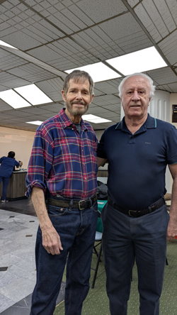 Finally, here is a picture of my partner Ruben and Maria Tereza, another good player on Wednesdays and some Mondays as well. Lest you think that I am just making up names, you should be aware that "Maria" is by far the most common female first name around here. In fact, on this Wednesday, there were eight women playing, and six of them had the same first name. This is why I usually refer to the women with two names; you need to add the middle name in order to tell them apart.