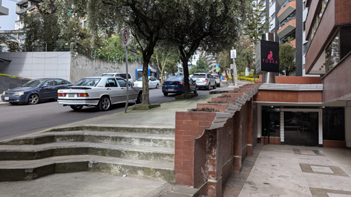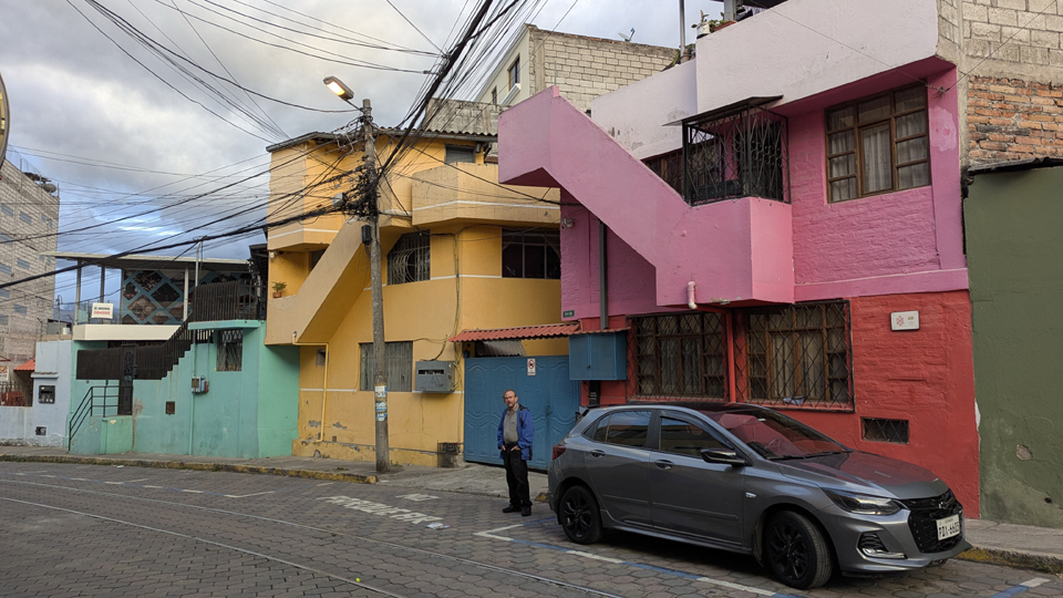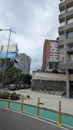 As you saw in the movie, the walkway and stairs end at the top of a street that comes up the hillside from Avenue Oswaldo Guayasamin. There has been some new construction here, and the street where the stairs dump you out is quite new.