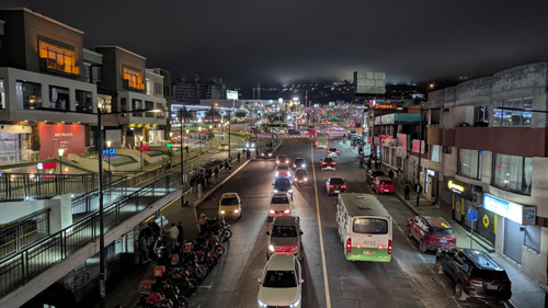 Plaza Cumbaya also has a number of stores that we visit frequently, including the equivalent of a five and dime, a big hardware store, our main bank, Hornero Restaurant, and an ice cream shop with local flavors. Coming east and going around the corner to the north, are Taconazo (Mexican) and Rusty's Burgers, two other eating places we frequent.