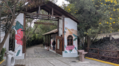 We began by heading up Oswaldo Guayasamin, but at the top of the street where the overpass is, we angled off to the left and followed a smaller road along the edge of the northwest part of Cumbaya heading, it seemed, up into the hills. After about a mile we were basically on what seemed like a country road. This narrow road headed west towards Quito, went under the Simon Bolivar expressway, crossed the Manchangara River and then headed up the winding road the climbs the east side of the mountain range that forms the east boundary of the Guayllabamba River Valley, some two thousand feet higher than the Tumbaco Valley where Cumbaya is located.