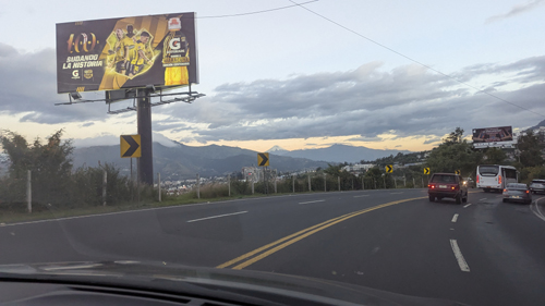 (Oddly, when we returned to the Tumbaco Valley after the game, we did not follow the same route. The reason was, Gustavo told me on one trip, was than when the game is over at 7 or 7:30, there is lots less city traffic and is easier to go north to the tunnel.)