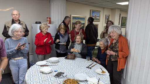 Gustavo and I played here every Monday but one for the rest of May and June, until we left in July. I really enjoyed meeting all the people at this club; everyone was extremely friendly, and spoke English as much as they could (which wasn't much for some). I could understand a lot of what was being said, until a rapid-fire discussion of a particular hand got going, and then Gustavo had to summarize for me. At one game midway through June, one distinguished lady had a birthday, and of course everyone had to celebrate it. This particular lady uses a wheelchair, and so the director puts her North at table 1, which means that she and her partner stay in the same position at that table throughout the game, while all the other teams rotate around from table to table. Here are a movie and still picture of her birthday celebration during the break: