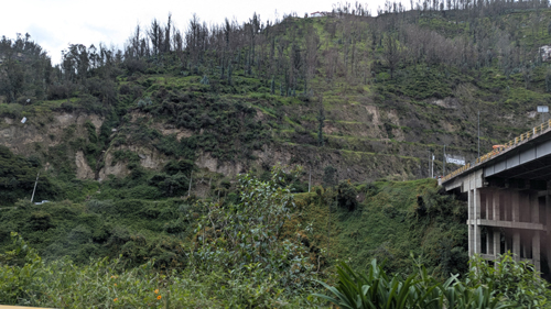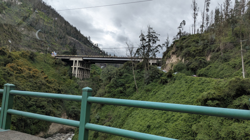 I've referred numerous times to the Manchangara River, but until we got onto our bridge across the river, I had never actually seen it. But from our bridge crossing I was able to get a really good view of the Manchangara River. While the river looks wild and picturesque, it has long been the center of controversy, as the expansion of the city of Quito has led to significant pollution of the once-wild river. Actually, a court decision last year classified the river as an "entity" under Ecuador's environmental laws. This requires the government of Ecuador and the government of Pichincha state to take care of it and clean it up.