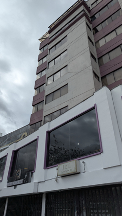 Rivera del Rio is situated on a plot of land that backs up to one of the many streams that run through the Tumbaco valley, and so at least on one side of the building the views are out across a green, undeveloped area. This side of the building is beautifully landscaped, with walkways and short trails, a tennis court, a swimming pool, picnic areas, and other facilities that residents can take advantage of. The card room is located on the second floor (keep in mind that what we would call the second floor is Piso 1; our first floor is called "PB" or "Planta Baja" in Spanish-speaking countries), at the back side of the building. I have marked it on the view at right.