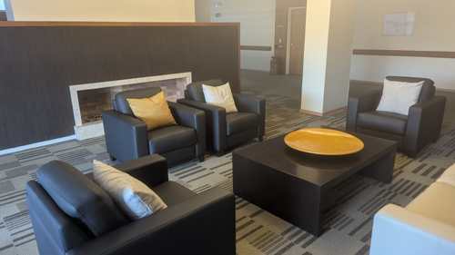 This recreation room is located in the southeast corner of the main building. It has a big open space where the card tables are set up, a kitchen and storage area, and even a balcony at the far side of the room. There are lots of windows, and it is an ideal space to have an afternoon of bridge.