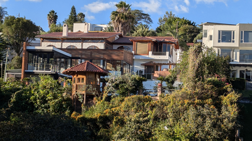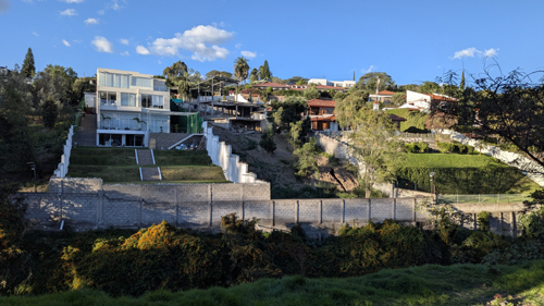 After passing this "high rent" district, there are no longer houses across the ravine (for whatever reason) until you get closer to the center of Old Cumbaya and eventually the starting point of the trail.
