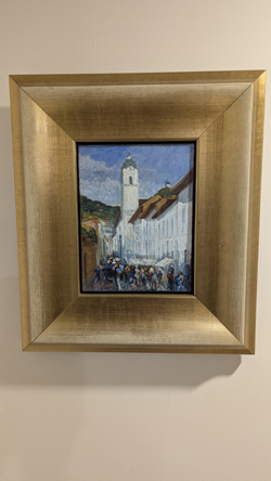 Vintimilla was born in Quito in 1953, and studied architecture at the Central University of Ecuador. His work reflects the influence of his city and his architectural studies. Vintimilla defined himself as an artist "with a distinct technique and style." Jorge Vintimilla's works encompass many hours of work, study and dedication. The detail in his strokes characterize his work; he used various materials and textures to achieve a harmony of form, and this was accentuated by the apparent ease of his brushstrokes. Sadly, Vintimilla died from a brain tumor in late 2018.