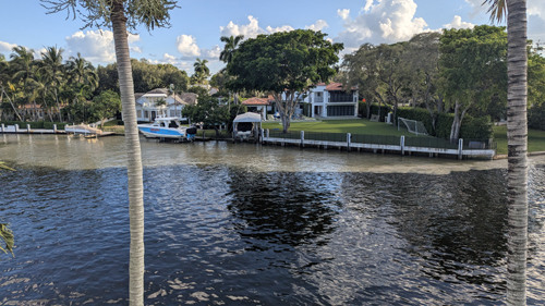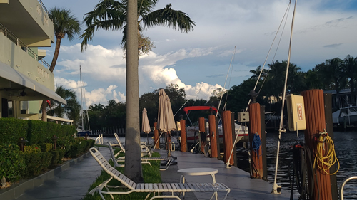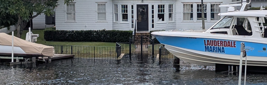 I have been coming to Fort Lauderdale frequently since Grant and I bought the condo in 1990- at least a few times each year. I can recall that it wasn't until sometime in the 2000s that I ever saw even a part of our dock underwater when there wasn't a storm surge involved. I recall than when Superstorm Sandy passed by, almost our entire dock was under water at high tide, but then waves were coming across A1A over at the beach as well. Like some other riverfront dwellers, our dock has been raised once during the time we've had the condo.