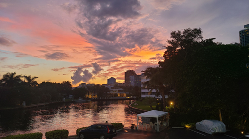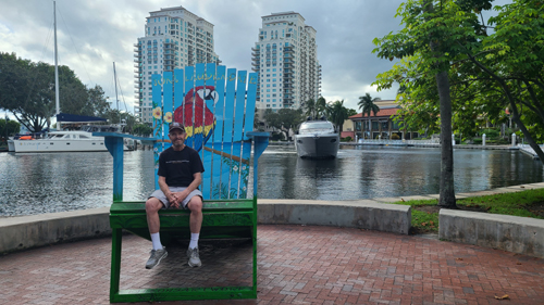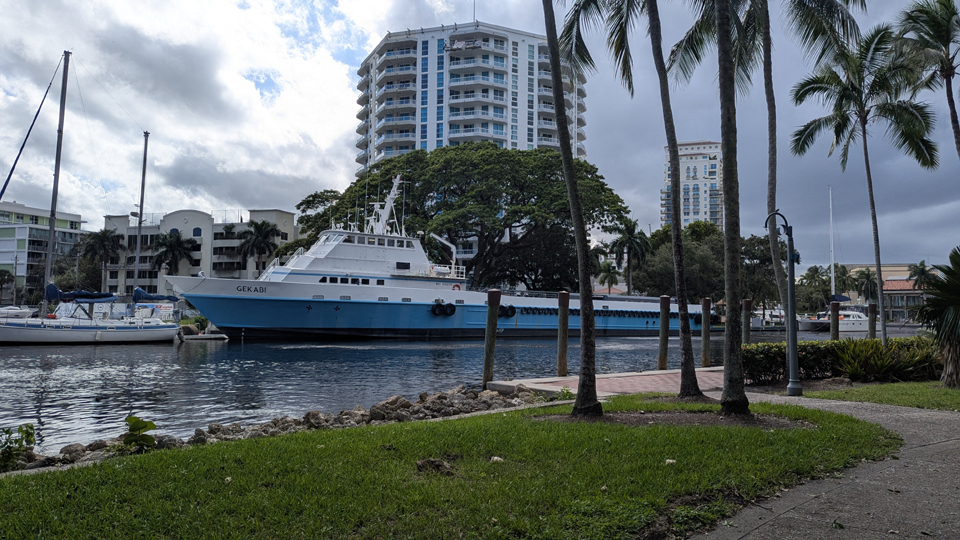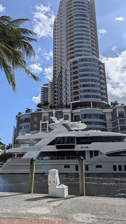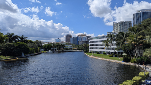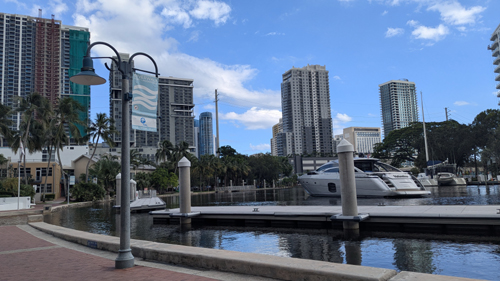 It ends just south of those highrises on West Las Olas Avenue just north of the drawbridge that takes The Avenue of the Arts over the New River. You can see most of these things in the two pictures we took here today: