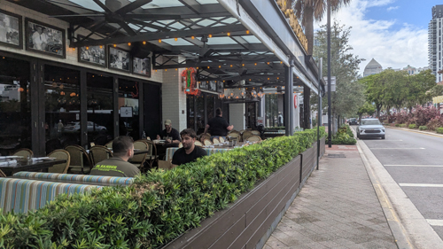 From here, the Riverwalk heads west, passing south of Stranahan House and the Icon Las Olas on a walkway that is cantilevered out over ten feet or so of the New River. At the Icon Las Olas, there's an outdoor bar/restaurant that, on nice days like today, is usually pretty busy.