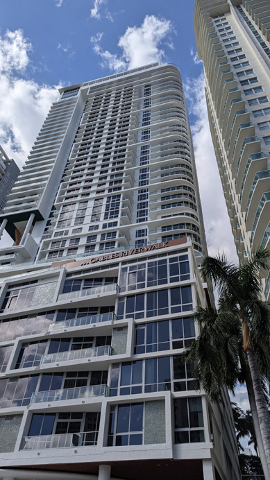 So the Riverwalk continues to follow the north shore of the New River, eventually passing under the Third Avenue drawbridge. Just before it goes under this roadway, there is a construction site on the north side of the street. We have seen in the last year or so the demolition of the small professional building that was on the site, the construction of a major foundation, and the erection of a new condo building- The Gables Riverwalk. This new building, which has now topped out, is currently Fort Lauderdale's tallest building at 47 stories. It may hold that title for a year or two, but there are taller structures planned or under construction.