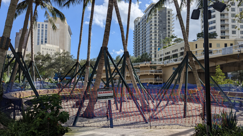 This park has been here for many years, and, up until now, has simply been an open lawn with a walk circling the lawn. At the northwest corner there has always been a lighted fountain, unusual in that it had sensors that allowed passersby to control the height of the fountain and/or which nozzles were active at any given time. We have very often stopped at this fountain, which is at the corner of Las Olas and Andrews Avenue.
